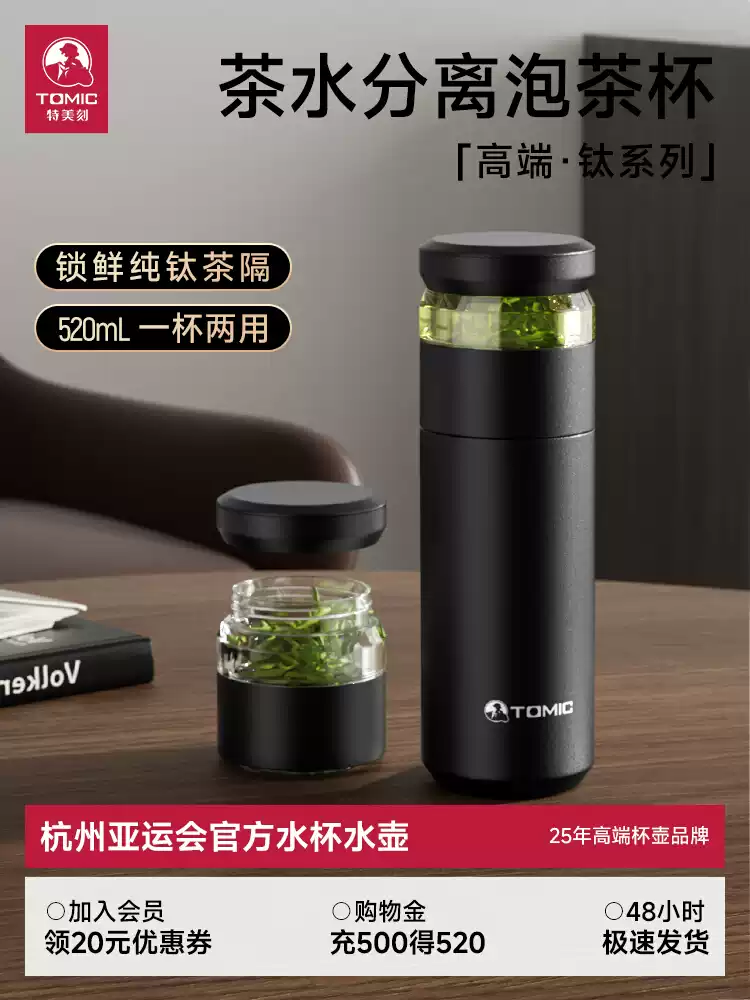 tomic特美刻保温杯茶水分离泡茶杯男款纯钛水杯子教师节礼物