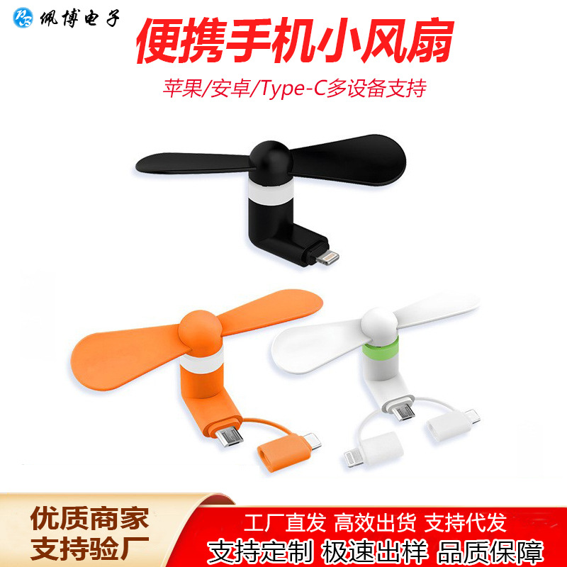 创意迷你手机风扇安卓苹果type-c三合一便携充电小风扇可印刷logo
