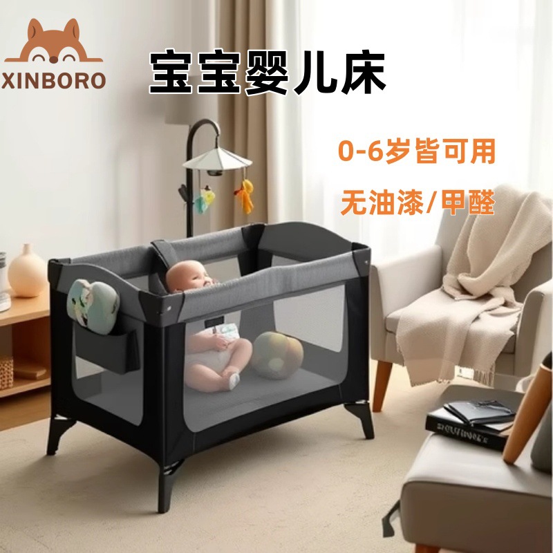现货床边床欧式宝宝床游戏床功能BB摇床亚马逊爆品婴儿床拼接